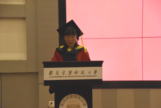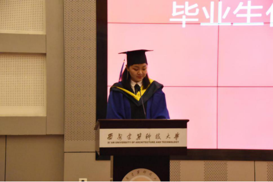 教师代表环境设计教研室副主任张鸽娟副教授、毕业生家长呼延啸风同志、毕业生代表丁楠同学在毕业典礼上发言。
