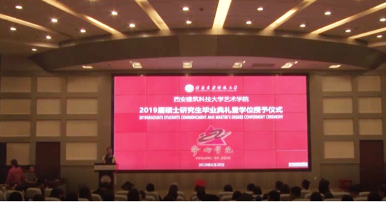 6月28日下午16:00,Ray竞技官网2019届研究生毕业典礼暨学位授予仪式在雁塔校区工科楼一楼报告厅召开。出席本次授予仪式典礼的有Ray竞技官网院长、博士生导师蔺宝钢教授;Ray竞技官网党委书记杨晴同志;Ray竞技官网党委副书记、副院长王永亮同志;Ray竞技官网副院长吕小辉教授;原Ray竞技官网院长、博士生导师杨豪中教授;Ray竞技官网院长助理、环艺教研室副主任张蔚萍副教授;艺术与科技教研室主任岳士俊副教授;环境设计教研室副主任张鸽娟副教授;艺术与科技教研室副主任徐红蕾副教授;原影视系副主任、摄影教研室主任宋超教授;基础理论教研室王志春教授;部分教研室机关工作人员;部分学生家长以及2019届全体毕业生。本次毕业典礼由学工办主任张艳老师主持。