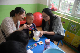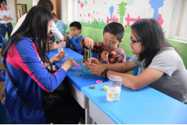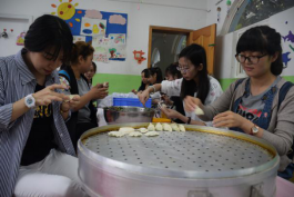 捐赠仪式结束后,党员代表们融入康复中心儿童们的日常生活,与他们一同做早操、上手工课,在党员代表们的协助下,孩子们用笔在纸上、石头上画下了一个个生动的形象。随后,党员代表们还为孩子们包饺子。虽然彼此之间无法像常人一样进行语言交流,但微笑已经成为了最美的符号。