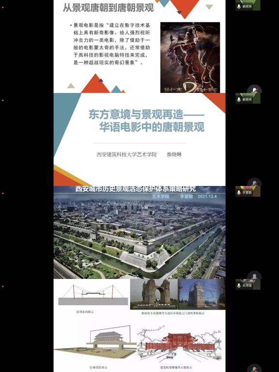 在本次系列讲座中,姜涛教授以《雕塑的“具象、抽象”表现》为题,系统讲述了雕塑艺术的具象再现、具象表现以及衍生呈现,雕塑抽象表现中的“有形”与“无形”等概念。张鸽娟教授以《西北乡村“共同营建”的动力机制及过渡模式探讨》为主题,为大家详细阐述了西北乡村营建面临的机遇和困境,指出对乡村营建的感悟和思考。原文泰教授从1950年代陕西女子放映队考察出发,以《“现代”女性与电影机器》为主题,从性别平等、女权主义讨论了女性在电影发展中的作用。崔文河教授主讲了《人类学视角下西北民族走廊风土景观与聚落民居》,从社会人类学的角度出发,结合西北民族走廊各民族的生活特征,生动形象的展示了各民族聚落的“美美与共,和而不同”。