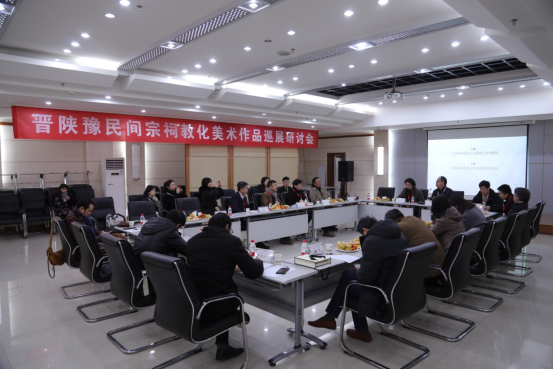 开幕式之后举行了专题研讨会议,研讨会针对晋陕豫区域、民间宗祠、民间艺术、传统纹样、艺术创作等关键词展开交流和探讨,主要讨论了“宗祠空间记忆与文化的艺术可能性”、“传统民间艺术文化在新时代的发展”等议题。