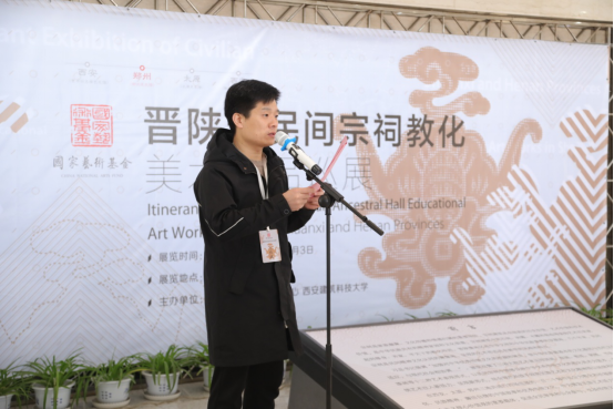 开幕式最后,学校党委常委、建筑学院高必征书记宣布晋陕豫民间宗祠教化美术作品巡展河南站开幕!
