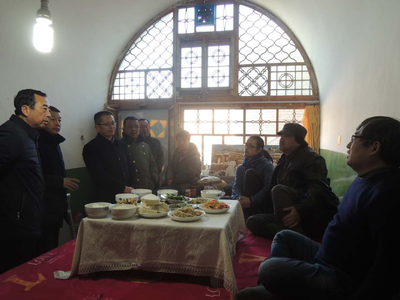 此次活动在全国四个地区分别进行,1 月 20 日(小年)“陕北榆林过大年”活动在郭家沟正式启动。活动内容有百人秧歌、百人唢呐、百名妇女擀杂面、剪窗花、写对联,做年饭等民俗活动。王志春副教授作为上世纪九十年代最早来到郭家沟写生的艺术家之一,在这次活动中再现了当年首次来到郭家沟写生时与写生基地创办人郭鹊飞家人的对话,当年的郭家沟贫穷落后,来这写生的师生寥寥无几,也只能散落在各家各户,在王老师的建议下郭鹊飞办起了郭家沟最早的美术写生基地,写生基地创办了近 20 年,在此期间来此写生的师生越来越多,每年旺季来此写生的师生近千人,也使村民们足不出户发挥所长做起自己具有特色的小本生意,他们的剪纸,刺绣,民歌,特色小吃等被受外来游客的喜爱,日子过的越来越好。与此同时,国际策展人文集老师在于绥德县县长姬跃飞交流时表示,想让更多的国际艺术家了解陕北了解郭家沟体验黄土风情。写生基地继承人郭灿表示将基地进一步进行改造完善,以便更多的国际艺术家来此进行艺术创作与交流。