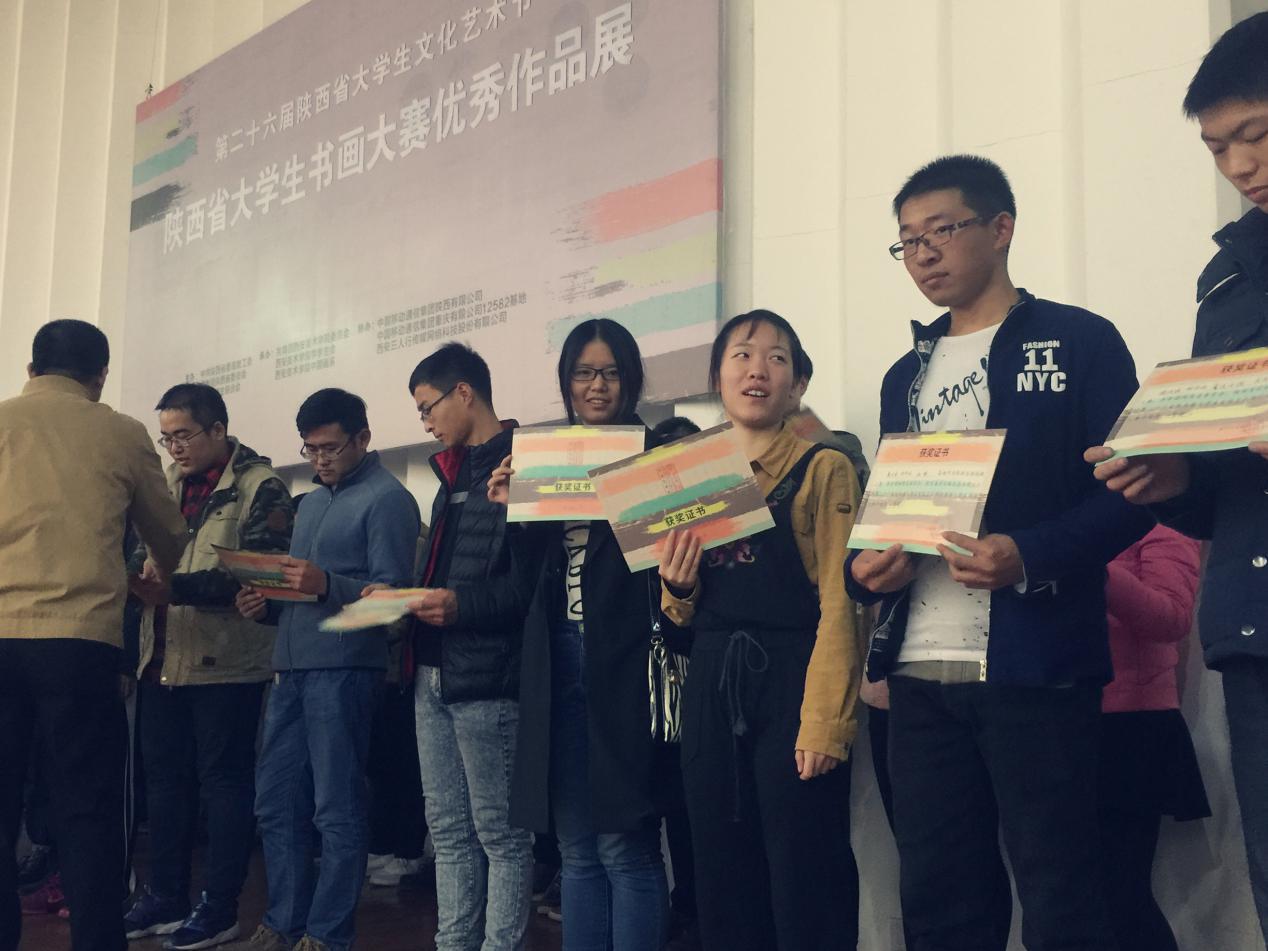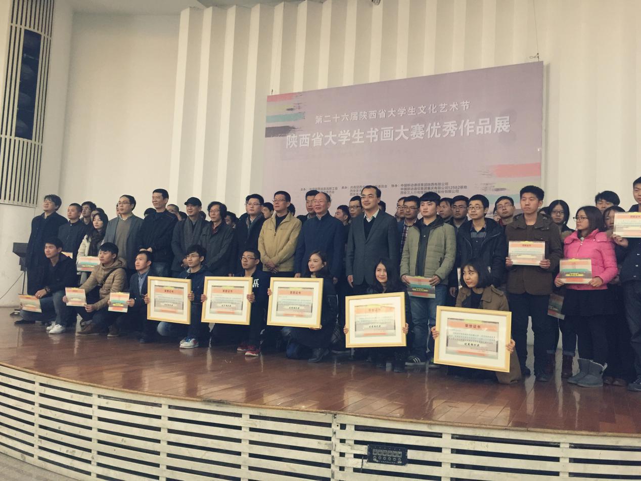 2015年11月26日,由中共陕西省委高教工委、陕西省共青团委、省学联共同主办,西安美术学院承办的第二十六届“和青春▪共筑中国梦”陕西省大学生书画艺术大赛颁奖仪式在西安美术学院举行,在本次大赛中,我院绘画专业学生侯琪琪获得国画作品二等奖,马浩然、马培源、钟洋三位同学获得油画作品三等奖,同时,雷电竞官方网站获得了优秀组织奖!