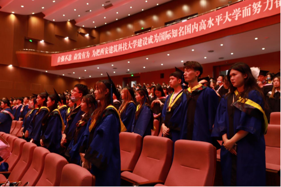 学位授予仪式随即开始,取得学位的研究生、本科生依次上台接受教授代表为其拨正流苏并颁发学位证书。毕业典礼仪式在校歌声中圆满落幕。