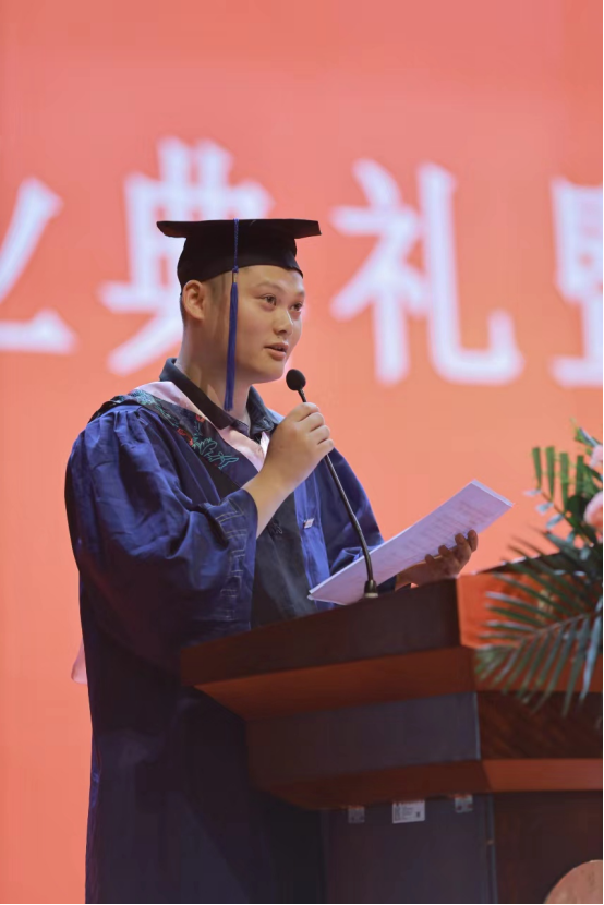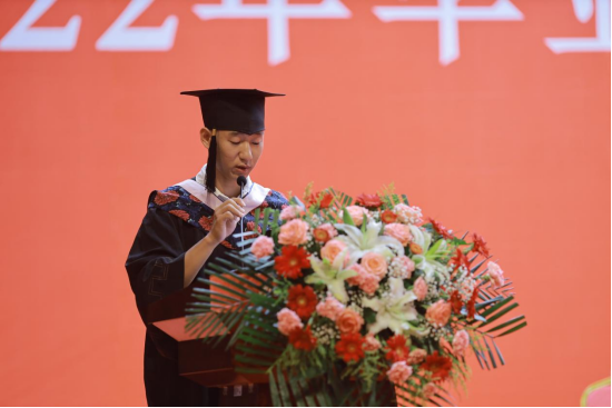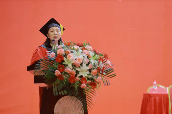 随后,教师代表徐红蕾教授为全体毕业生送上最真挚的祝福:一是发扬好习惯,成就大未来;二是坚持好心态,步入大舞台;三是培育好人缘,书写大人生。