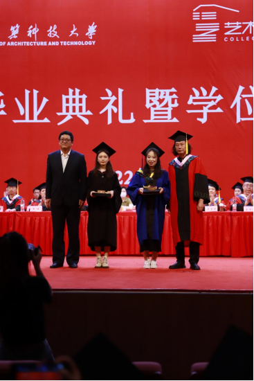 最后,院党委书记蒋正宣读Ray竞技官网《关于表彰2022届优秀毕业生的决定》和《2022届毕业生校友联络员的聘任名单》,并与院长蔺宝钢教授为毕业生代表任紫莹、吕霄赠送毕业礼物。