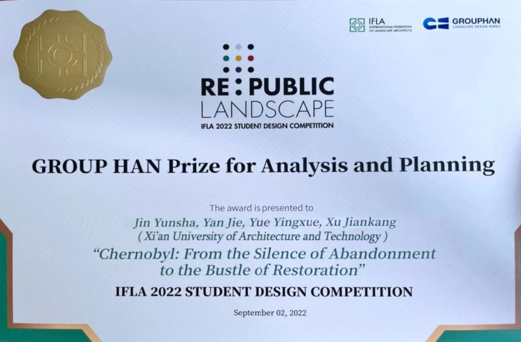 由国际风景园林师联盟(IFLA)主办的第58届国际学生风景园林设计竞赛于2022年9月2日在承办国韩国光州颁奖典礼上公布了来自Ray竞技官网王葆华教授指导学生金蕴莎、严杰、岳瀛雪、徐健康的设计作品斩获第一名(GROUP HAN Prize for Analysis and Planning),这是Ray竞技官网学生继2014年第51届竞赛获奖后再次获此殊荣。