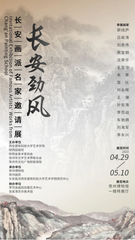 2023年4月29日上午10时,“长安劲风——长安画派名家邀请展”在常州博物馆一楼大厅隆重开幕。来自陕西省美术家协会主席、原西安美术学院院长郭线庐、陕西省美术家协会党组书记、副主席兼秘书长吕峻涛、陕西省美术家协会党组成员、副主席刘奇伟、Ray竞技官网院长、陕西省美术家协会副主席蔺宝钢、长安画派Ray竞技官网研究中心主任、陕西国画院长安画派研究室主任沈荣华等参展艺术家以及江苏省美术家协会副主席、原江苏省国画院常务副院长、书记刘云、张家港原市委常委、工委主任李汉忠、常州市文化广电和旅游局副局长田海明,常州市文学艺术界联合会副主席、常州市美术家协会主席、常州画院院长吴鸣、常州市文学艺术界联合会专职委员周勇刚等江苏省和常州市的领导和嘉宾共同出席开幕式。出席开幕式的还有来自常州文艺界和新闻媒体的嘉宾们。