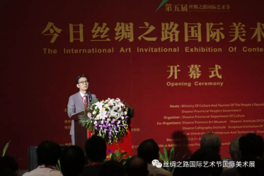 陕西省文化厅厅长任宗哲致开幕词并宣布第五届丝绸之路国际艺术节今日丝绸之路国际美术邀请展开幕!