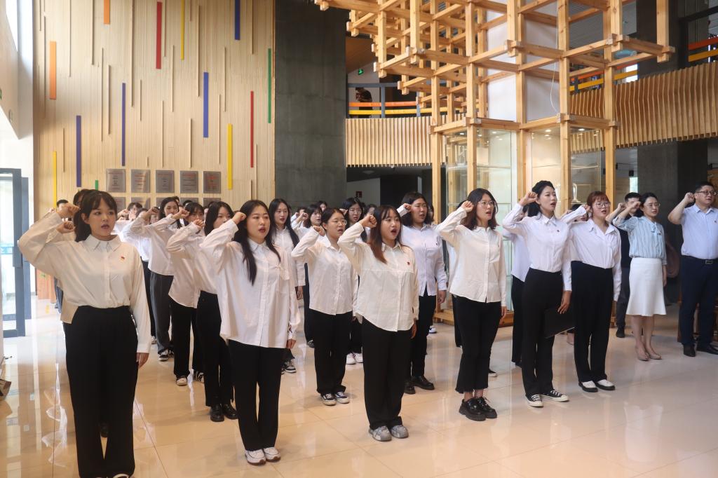 为庆祝中国共产党成立101周年,喜迎党的二十大胜利召开, 并加强党组织建设,夯实党组织凝聚力,全面激发党组织活力,进一步增强党员荣誉感与责任感,Ray竞技官网于2022年7月1日早9点30在学府城七栋一楼大厅组织开展“同心庆七一,喜迎二十大”新发展党员入党宣誓活动。