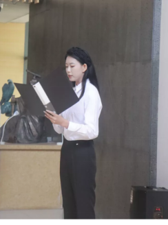 预备党员代表发言。预备党员代表折倩同学表示,作为新发展党员,要遵守党的章程,切实履行党员义务,努力刻苦学习,争做优秀党员,做好日常工作,严于律己,宽待他人。