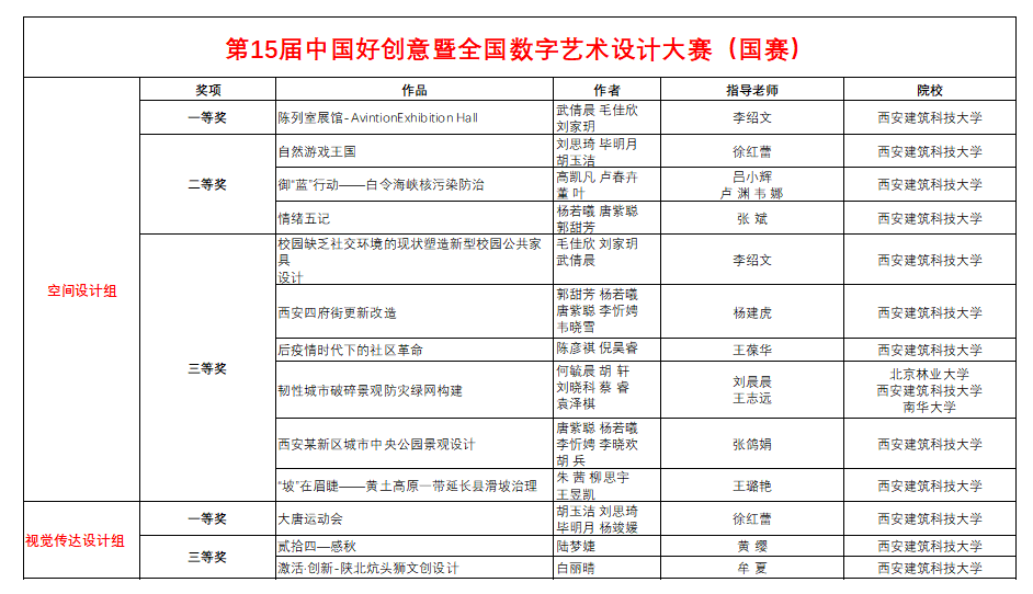 国赛获奖13项!!西安建大艺术师生在第15届中国好创意暨全国数字艺术设计大赛中获佳绩