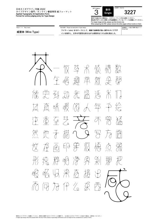 同时,余秋子老师的字体设计作品《威亚体》于本月荣获2021年日本字体设计年鉴(Applied Typography 32)专业组佳作奖(Best Work)。