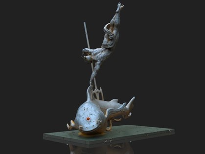 《天古神兽》系列创作是我的数字粘土作品,此系列创作的出发点是个人对雕塑空间和形体的认识,传达出怪诞和神秘的感觉,以及对中国传统造像的学习和借鉴。与之前《雪域藏羚系列》作品和《故弓之马系列》作品略有不同,转向浪漫主义塑造手法,如何去营造安排空间,大面的归纳和造物思维都是一直伴随我的创作过程中。