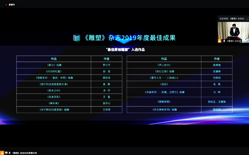 2020年8月23日,由《雕塑》杂志社主办“后疫情·谋发展”第二十二届中国雕塑论坛在北京亦庄·龙之旅大厦5楼报告厅以“腾讯会议”云平台的形式举行。