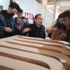 第二站,同学们在“源木”家具厂加工车间里中看到了手工艺人运用机器对木材进行了刨光,砂光,白磨,擦色,底漆,修色,面漆,加工,定装等一系列的制作流程,在工作人员对加工工艺的讲解下,同学们对家具制作流程还有如何制作出结实稳固,木纹清晰,色泽清莹的家具有了更深的了解。