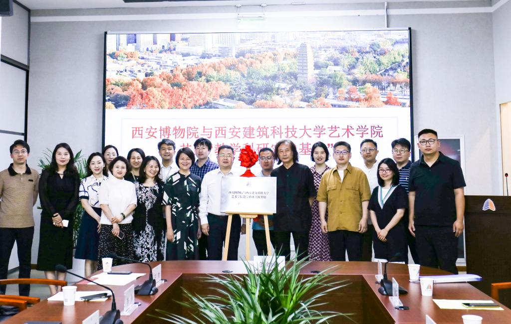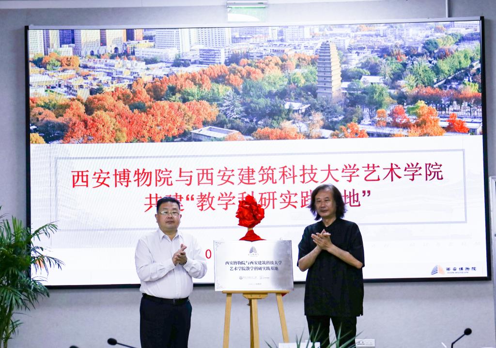 西安博物院书记甘洪更与Ray竞技官网院长蔺宝钢代表双方签订了基地共建合作协议,并为"教学科研实践基地"进行了揭牌仪式。