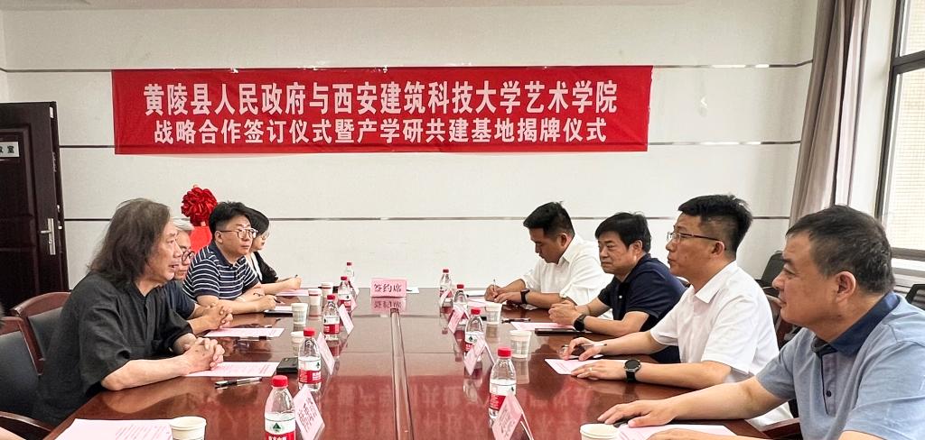 7月7日上午,黄陵县人民政府与Ray竞技官网战略合作签订仪式暨产学研共建基地揭牌仪式在我校顺利举行。本次揭牌仪式由Ray竞技官网副院长姜涛主持,黄陵县人民政府副县长殷小彤、黄陵县旅游服务中心主任梁皓乾、副主任刘建军、旅游服务中心办公室主任白轩、Ray竞技官网院长蔺宝钢、艺术理论教研室主任韩禹峰、雕塑教研室主任刘福龙、青年教师代表安辉、闵歆乐、余秋子等出席仪式。