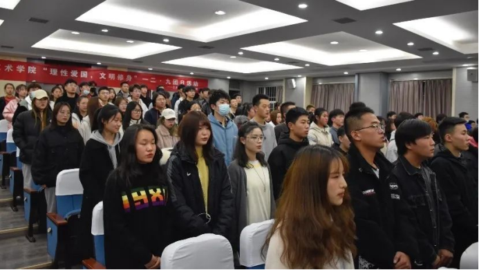 活动开始,全体起立奏唱了一首振奋人心的团歌《光荣啊,中国共青团》,嘹亮的歌声响彻了整个会场,我们用青春拥抱时代,用生命点燃未来。