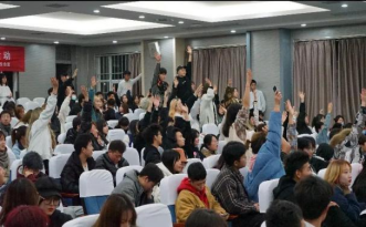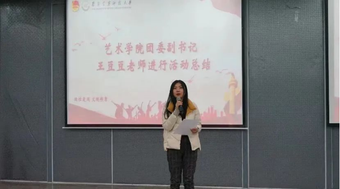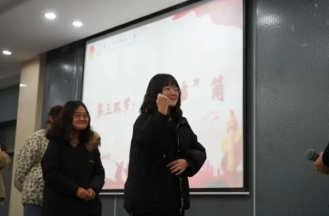 游戏环节结束后,王豆豆老师对本次活动做出 点评,谈到时代赋予青年的使命与责任,阐述了艺术与国家、文化之间的关系,提出“欲成其事,必炼其器”,提倡同学们青年大学习学起来、思政课堂听起来、学术活动搞起来、快乐生活嗨起来。