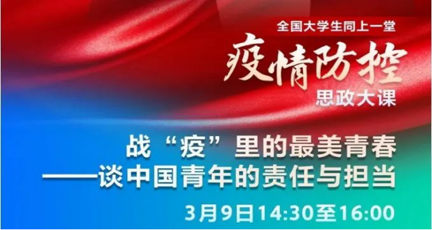 以及全国大学生同上一堂疫情防控思政课,大家都积极通过网络进行学习,我院青年大学生通过思政课的学习都得到了深刻的思想领悟,令大家受益匪浅。中华民族是一个坚韧顽强在困难中毫不畏惧的民族,同时更让我们意识到作为艺院青年应有的责任和担当。