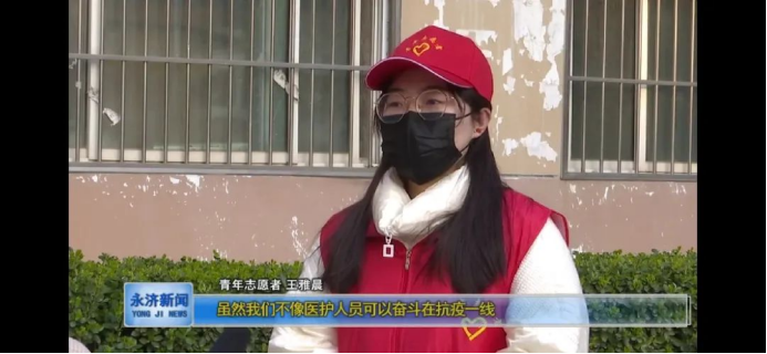 风景园林专业研究生王雅晨同学,身为永济市青年志愿者协会的一员,在疫情面前,投身抗疫一线宣传疫情防控知识,在社区站岗,在社区大门进行合理的隔离监控,帮助完成日用品的采集工作。