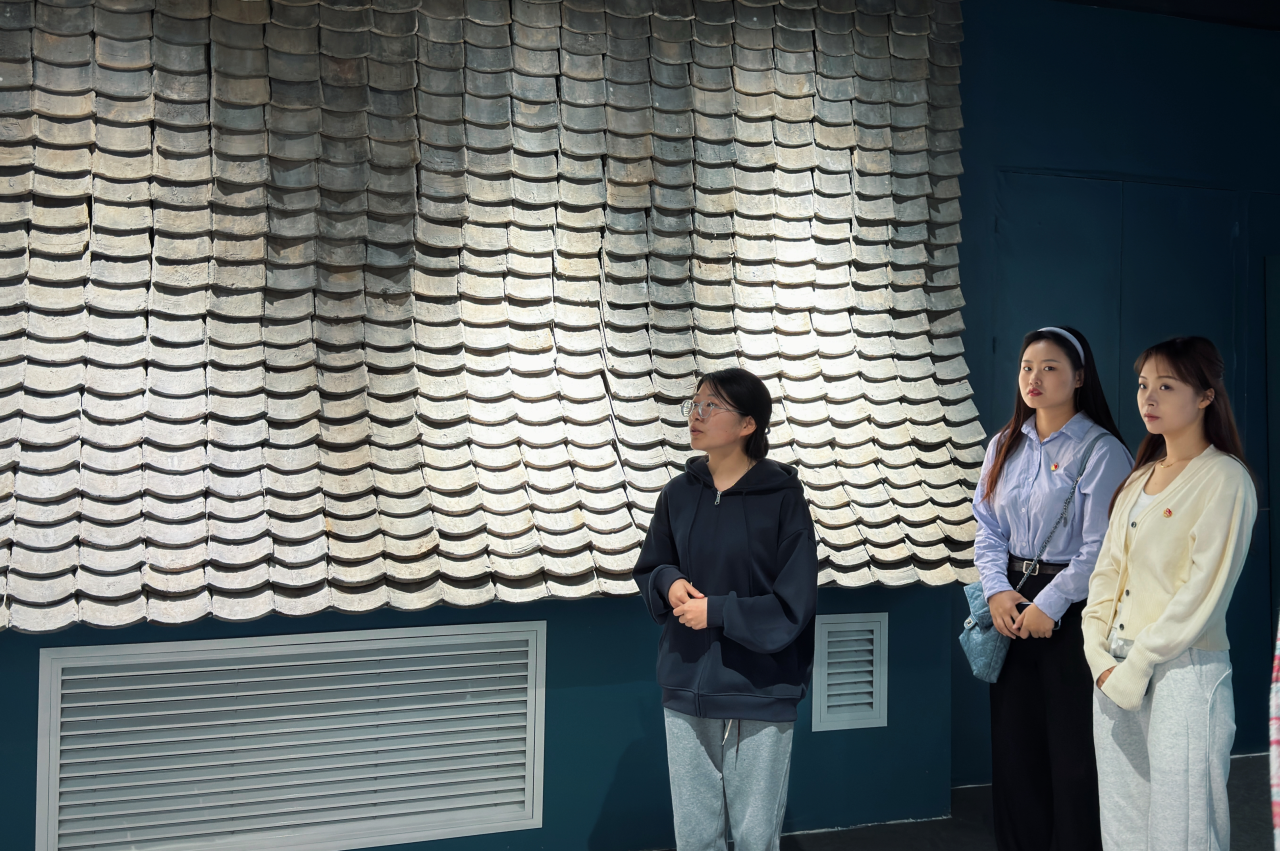 中国传统瓦作博物馆是我国首座以传统瓦作实物与技艺为主题的专题博物馆,馆舍分为两层,展厅以文物陈列为主,图文展板为辅。主要展示自先秦至现代与传统瓦作技艺相关的文物实物,包括历代瓦作构件、石刻、古建筑实体、瓦作工具、典籍文献、建筑模型等内容。随着讲解员生动精彩的解说,同学们仿佛穿越了历史的长河,共同探索着瓦作的演变与传承,感受着博大精深的中国建筑文化与古人精益求精的工匠精神。同时,讲解员还带领同学们欣赏了我院学子以瓦作为灵感所设计并制作出的丝巾,这些精美的作品使历史长河的遗迹在现代工艺品中再次绽放出了新的光芒。