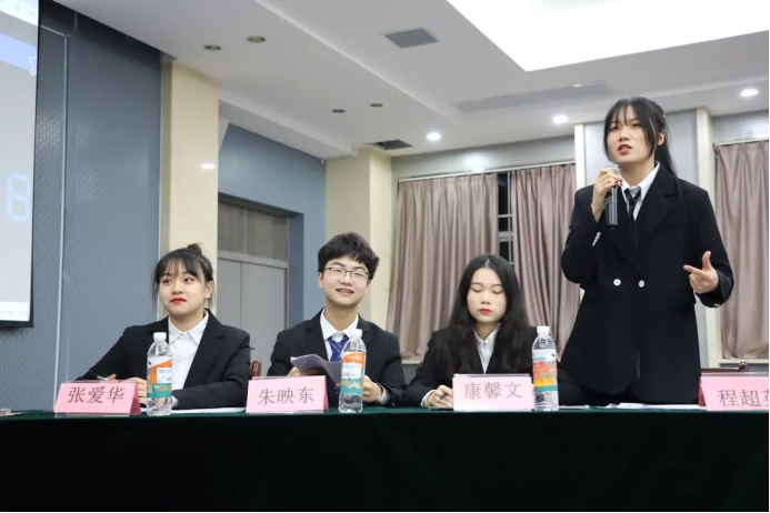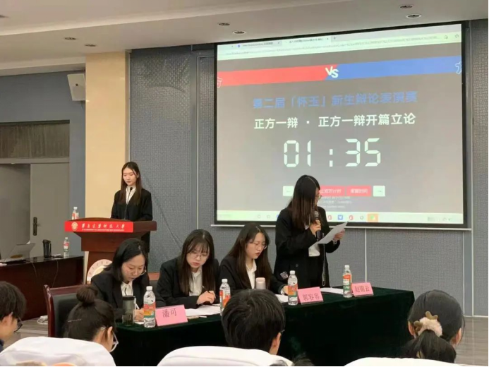 由主持人李乐婧宣读比赛规则,播放各阶段提示音。在正反方辩手做完自我介绍后,就辩题展开了这场没有硝烟的“战争”。