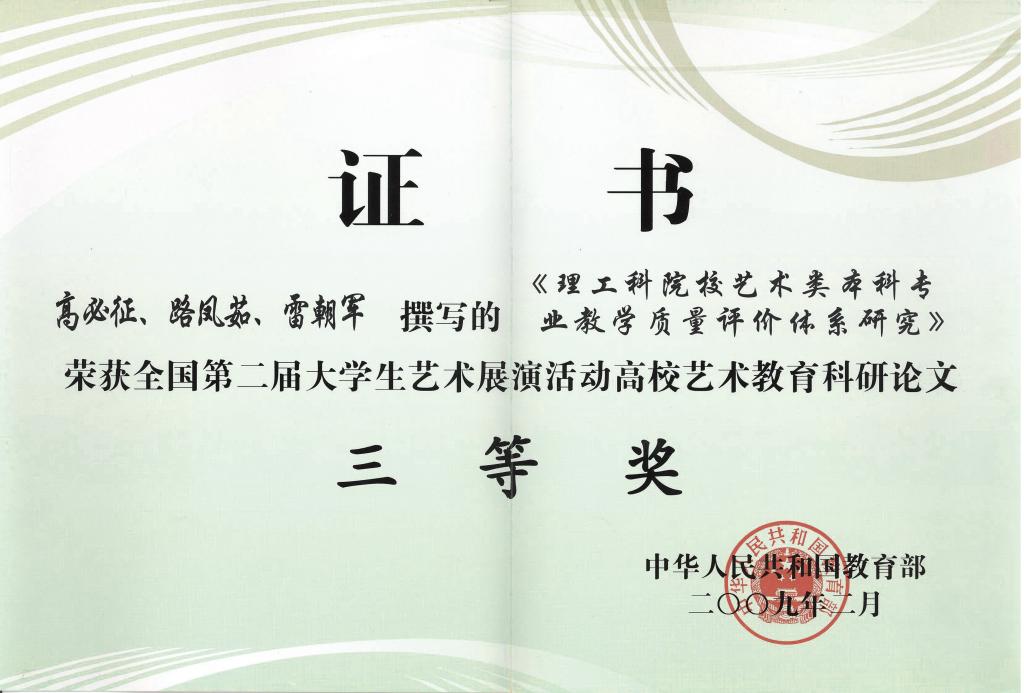 全国第二届大学生艺术展演三等奖 高必征、路凤茹、雷朝军